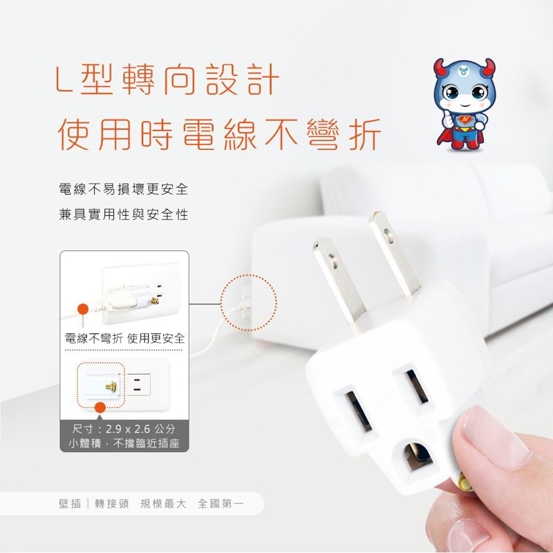 ●L型轉向設計,不佔空間,使用時電線不彎折
