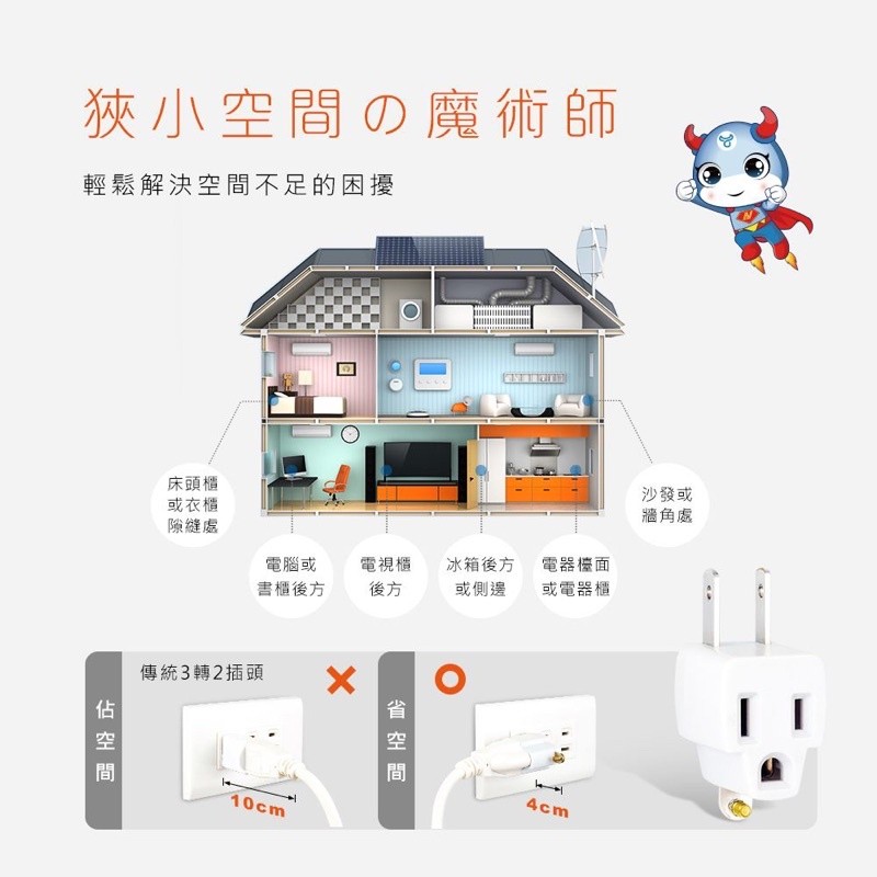 ●體積精巧,可適用狹小空間如:床頭櫃、電視櫃、冰箱後方等
